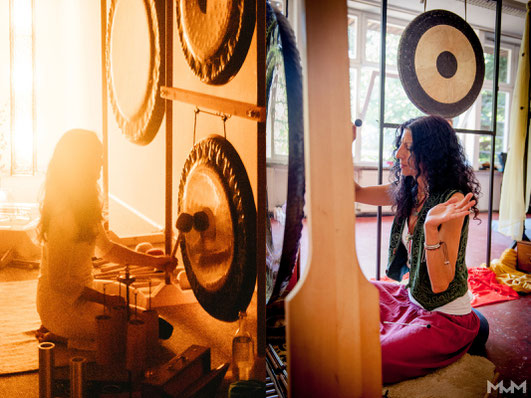 Diese Klangzeremonie wird von der Gongspielerin und Klangkünstlerin Nalini Bettina Kuhlmann (www.klangelexier.de) und Gongspielerin und Kundalini Yogalehrerin Nam Rattan Kaur Anger (www.namrattankaur.de) zelebriert.